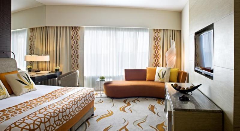 A vision of gleaming glass rising high above the city, one of the newest property stands out among the luxury hotels in Abu Dhabi. A striking new landmark in the United Arab Emirates, curved-glass panel structure is an architectural masterpiece. Up close, the blue and green glass panels create a breathtaking mosaic effect, mirroring the colours of the Arabian Gulf. The hotel provides complimentary valet parking, 24 hours in-room dining, 24 hour laundry service, babysitting services, business centre, car rental, evening turndown, full concierge facilities, hotel safe and multilingual staff.
